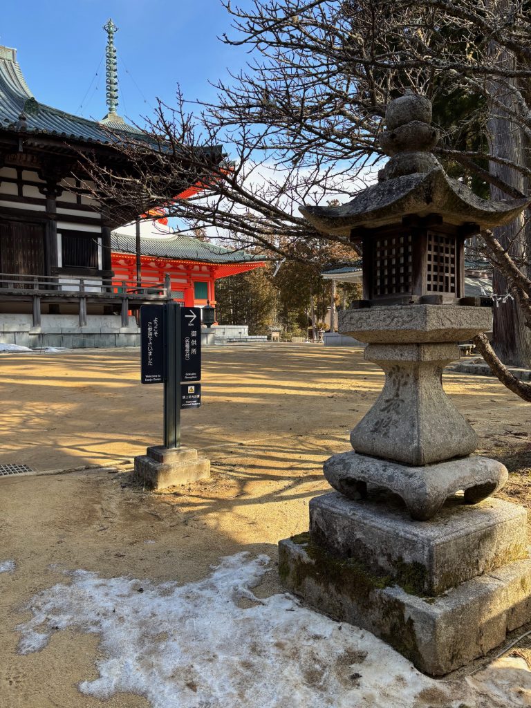 この日はお天気も良く、雪の降る気配もありませんでしたがせっかくの冬(立春は過ぎていますが)の高野山に来たのなら雪景色を見たいなぁと思っていました。まっさらな雪はなくとも雪の残っている箇所はあり、少しテンションが上がりました。