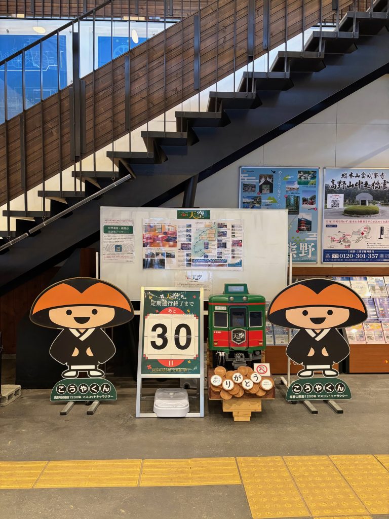 橋本駅から南海高野線で極楽橋駅、南海高野山ケーブルに乗り継ぎ高野山駅へ到着。