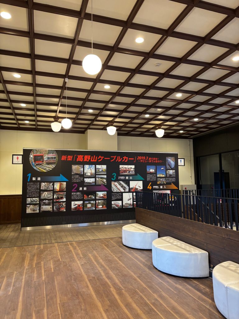 高野山駅に着くと、ケーブルカーの接続がよろしくなくて40分ほど待ちました。2階に素敵な空間が広がっており、暖房も効いていたのでそこで待たせてもらいました。